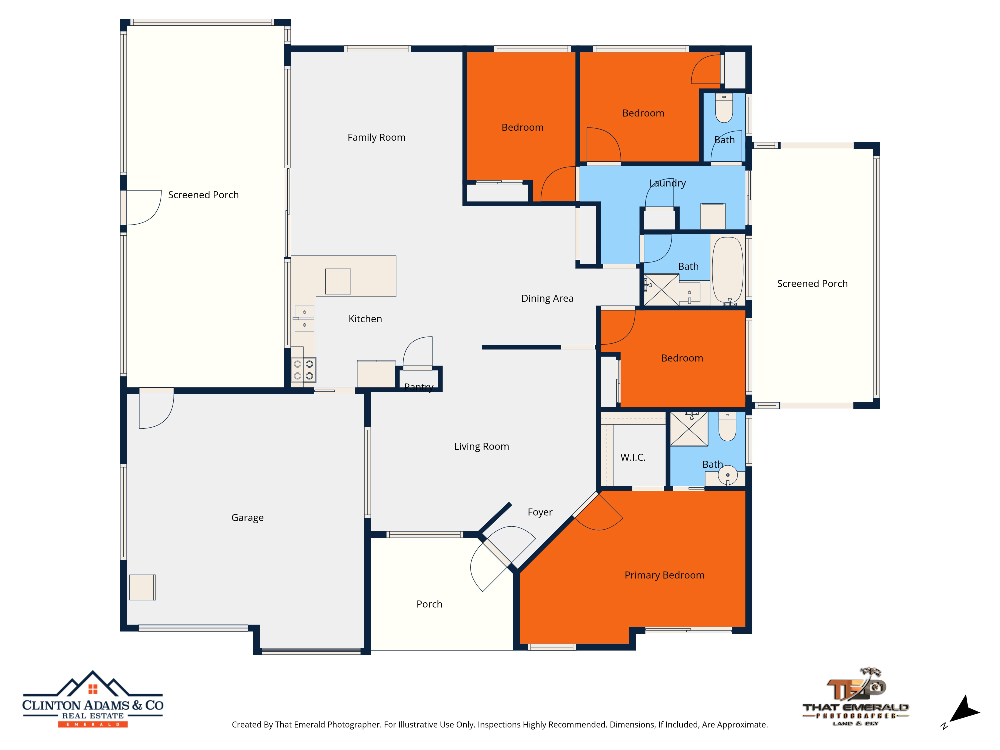 • Additional screened entertainment area adjoining the kitchen and dining